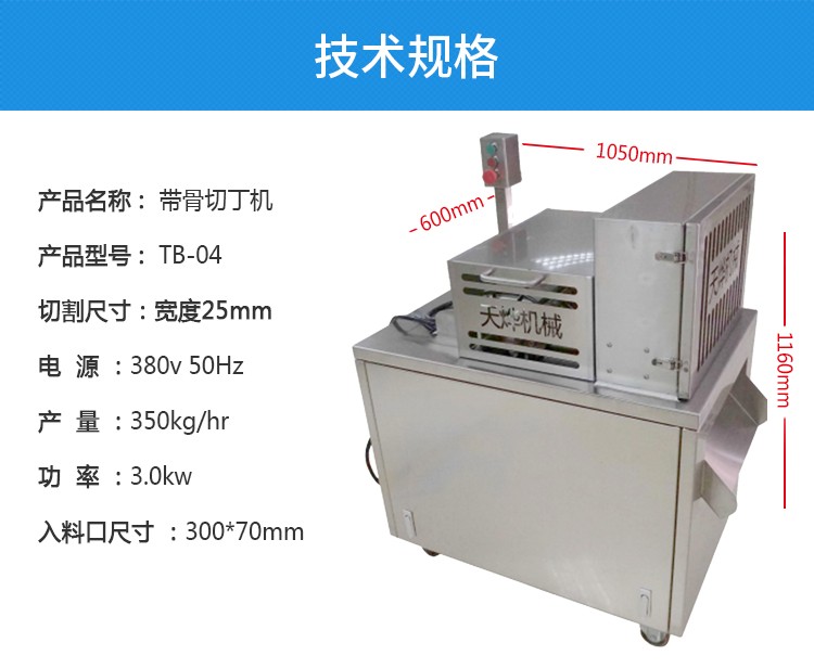 適用于-5—0℃的冷凍排骨切塊、凍五花肉、凍半片鴨半片雞切塊產(chǎn)品一次成型。